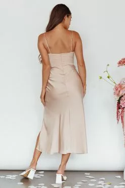 Here Comes The Sun Giorgette Side Split Midi Dress Champagne