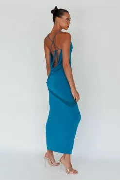 Here Comes The Sun Sun Kissed Cowl Tied Back Maxi Dress Teal