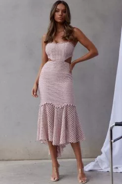 Selfie Leslie Zoey Lace Overlay Cut-Out Midi Dress Blush