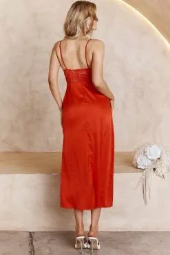 Selfie Leslie Well Versed Pleated Bust Front Split Dress Forest Green