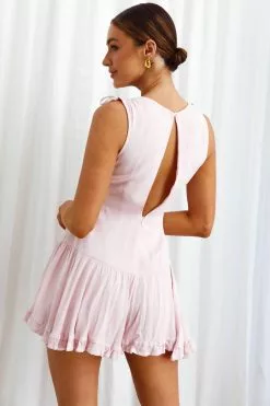 Selfie Leslie Bordeaux Drawstring Lace Trim Romper Pink