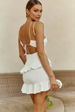 Selfie Leslie Moment Of Truth String-Tie Ruffle Trim Mini Dress White