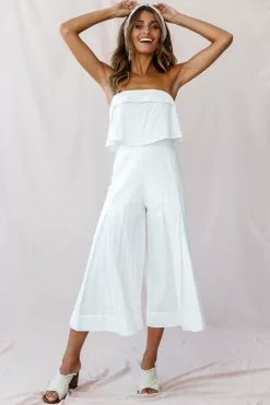 Selfie Leslie Saturday Layered Bandeau Wide Leg Capri Jumpsuit White