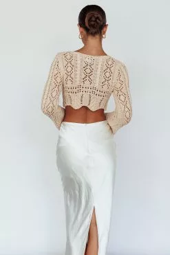 Maycie Long Sleeve Crochet Crop Top Beige