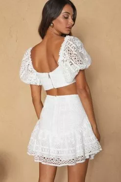 Selfie Leslie Daydreamer Flounce Hem Lace Skirt White