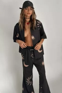 Indi Luxe Just A Hunch Pants Sun Moon Black