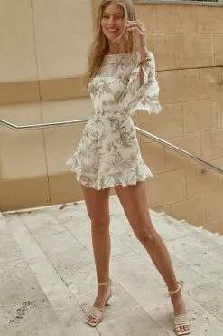 - White, leaf print romper