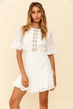 You will look super sweet in our Afternoon Delight dress. We love its textured fabric throughout and that gorgeous crochet lace accent in the bodice. Perfect for a wedding or special occasion teamed with nude heels and a chic mini purse.
