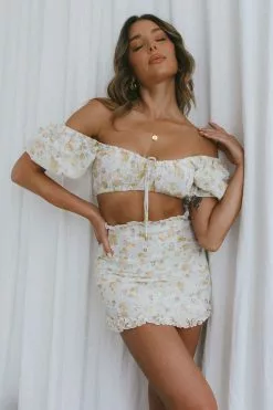 Angel Biba April Flowers Puff Sleeve Top Floral Yellow