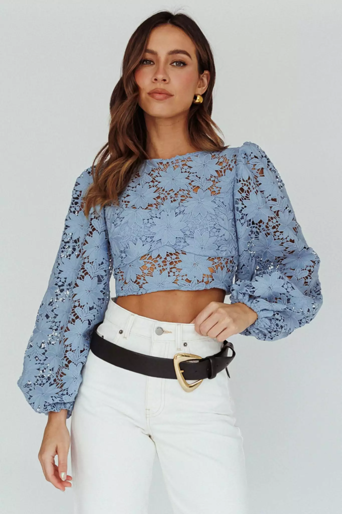 - Blue, lace crop top