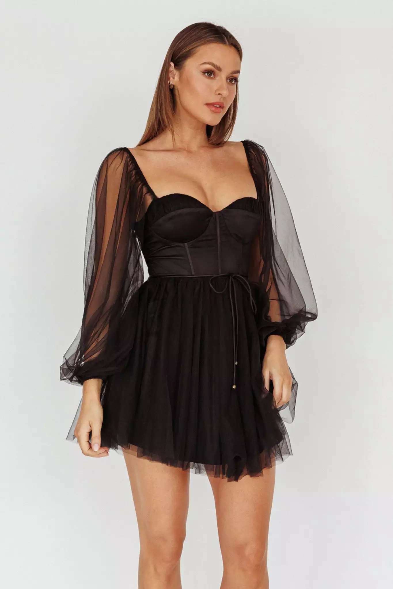 You’ll feel like a princess in our gorgeous Fairytale Dream mini dress. Featuring sheer sleeves and a sweetheart neckline, it’s perfect for a wedding or birthday celebration. Team it with diamante heels and get ready to be swept off your feet.