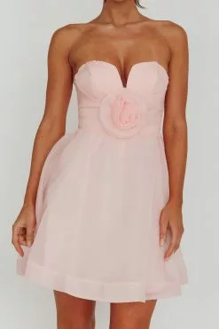 Angel Biba La Vie En Rose Strapless A-Line Mini Dress Baby Pink