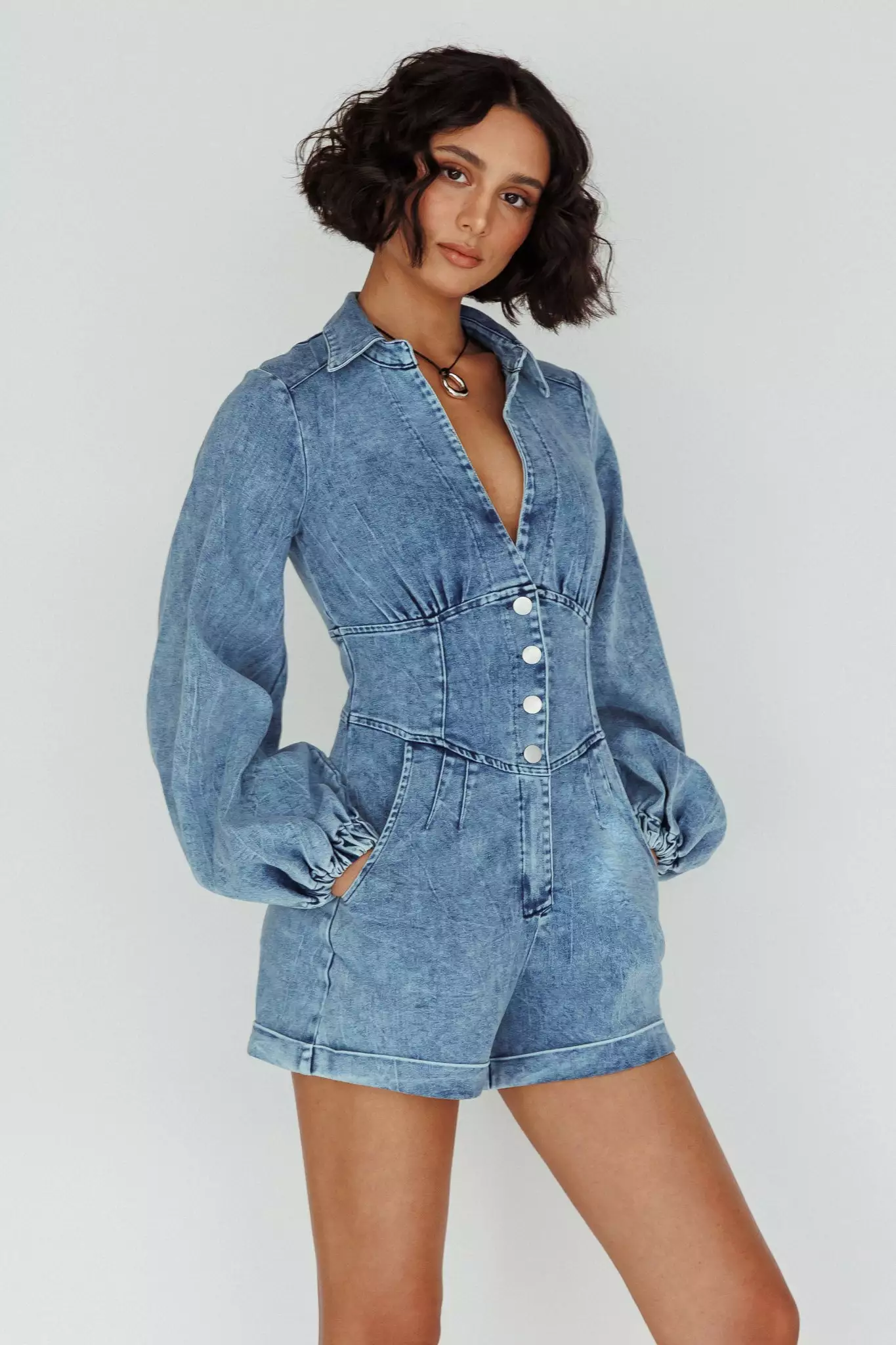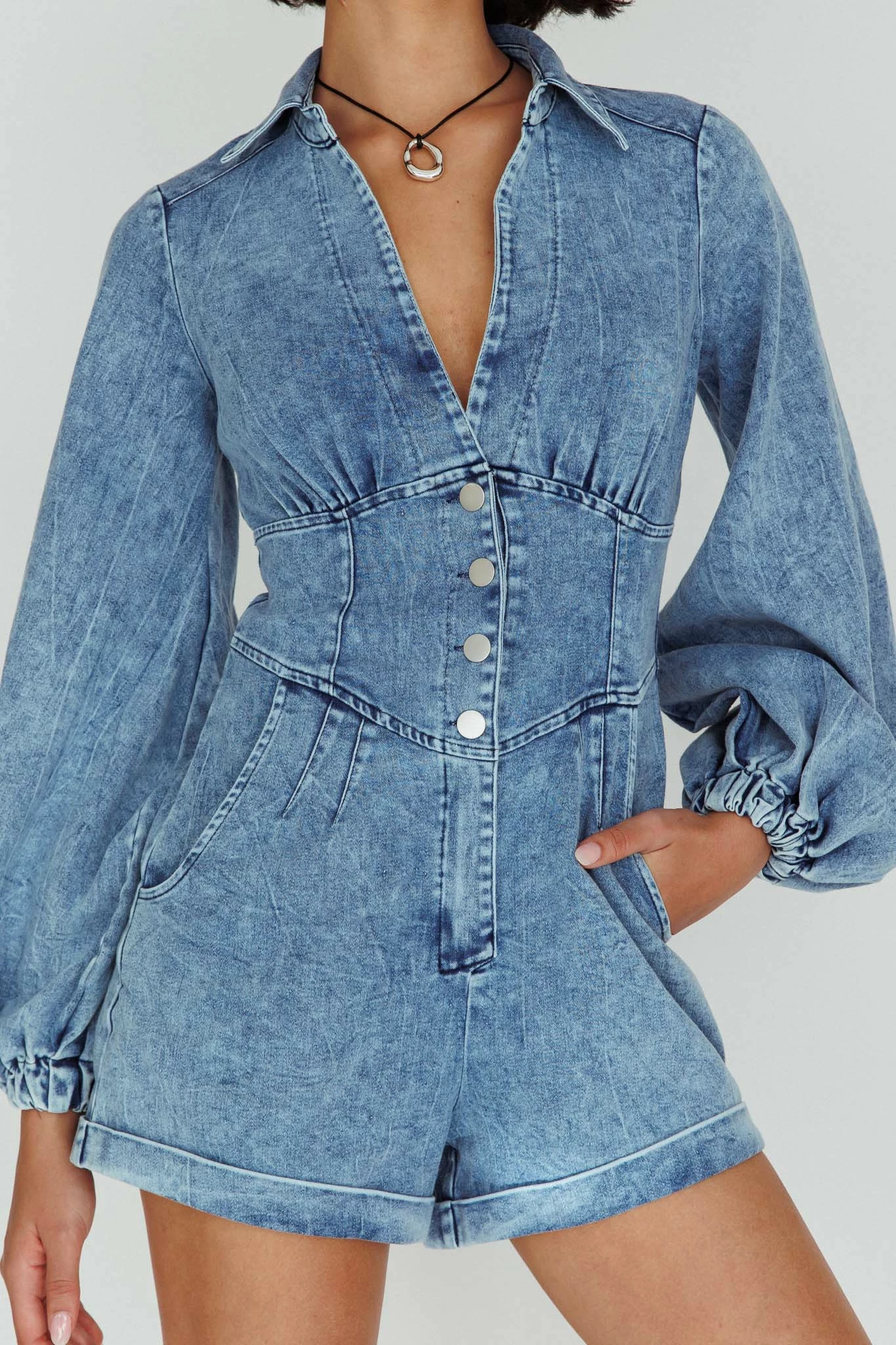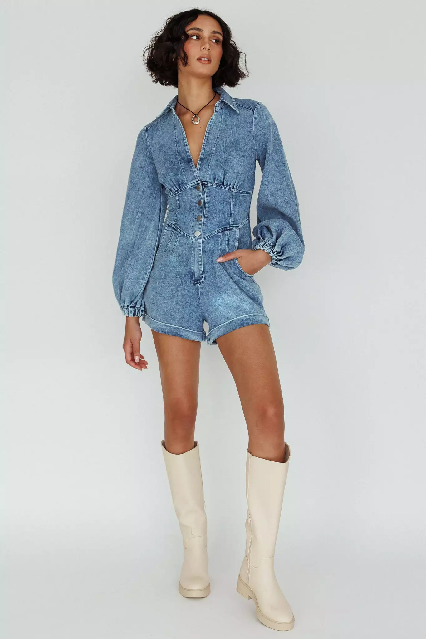 Turn heads in our super cute South Beach romper. We are loving the collared neckline and long, balloon sleeves. Perfect for weekends strolling the beach boardwalk with your beau. Team it with wedges for a night out with your girls or white sneakers for a cute-casual look we are crushing on.