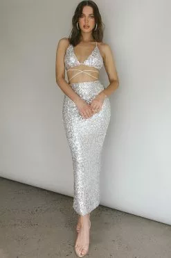 Steal the show in our stunning Zefa triangle top. We are obsessed with its sparkly sequin fabric, perfect for a glam girls’ night out! Team it with its matching skirt or jeans and a blazer for a look that’s sure to turn heads.