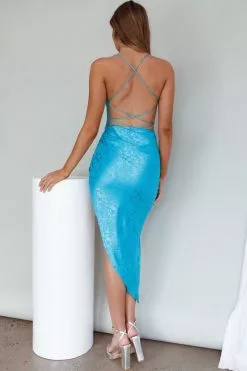 Annya Lace-Up Back Midi Dress Jacquard Aqua