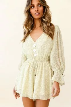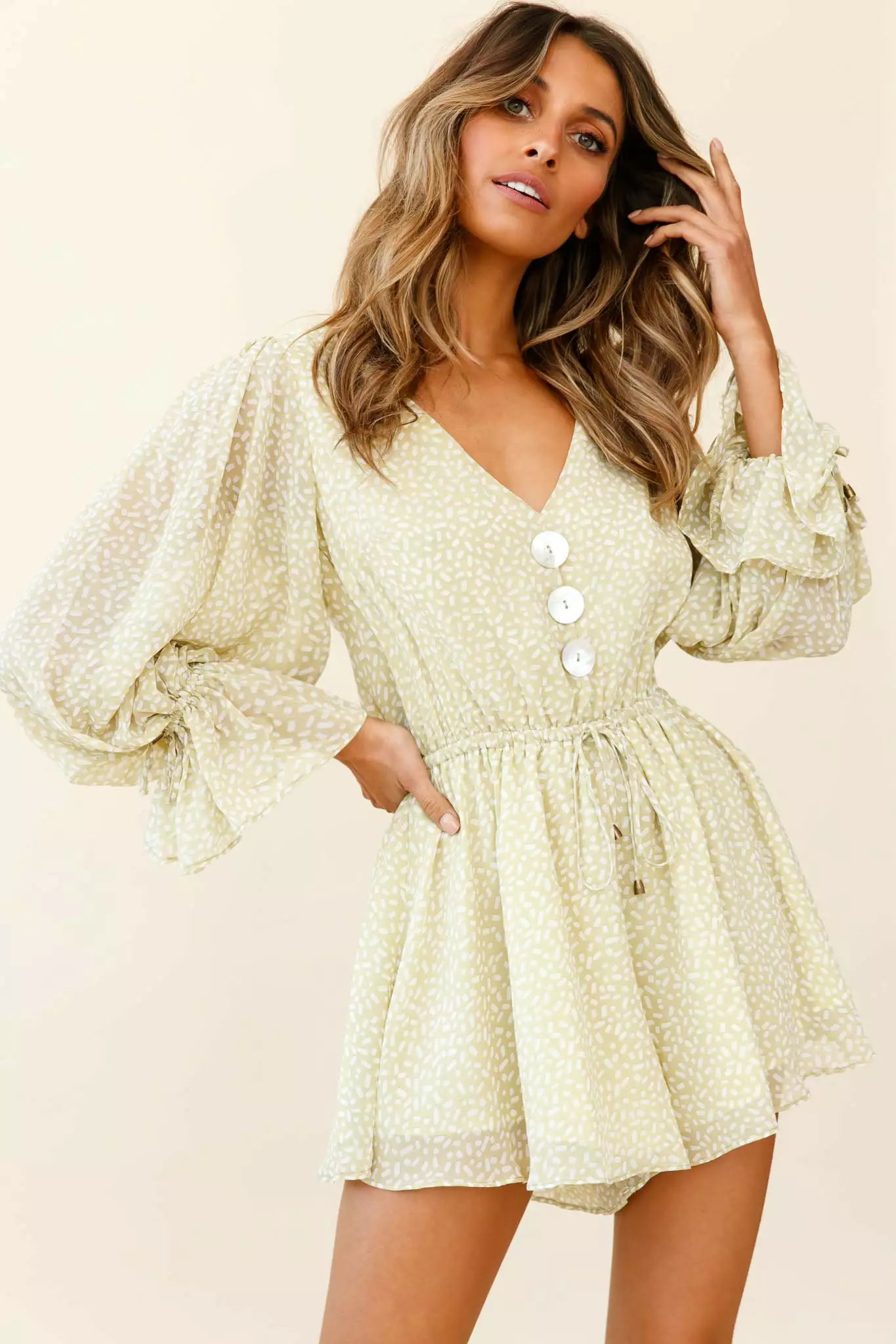 Hey there, cutie! You are causing quite the commotion in our adorable Believe It Or Not romper. We are all about the pearly, shell button detail in the bust and drawstring cuffs. Perfect for lunch with your girlies teamed with tan mules and a tote.