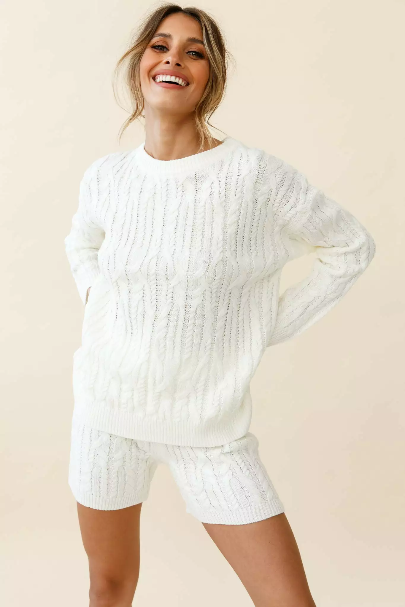 Snuggle up in our gorgeous Colorado cable knit shorts. Perfect for a cozy movie night with bae or coffee with your girls. Team them with our chic Colorardo sweater or a baggy hoodie and sneakers for a fun, casual look.