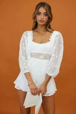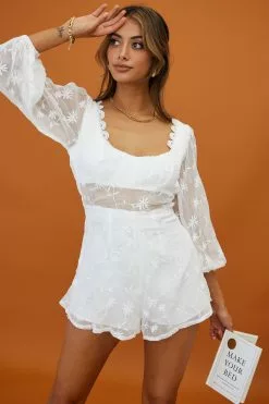 You won’t be able to stop the stares as you strut by in our gorgeous Delphine romper. Summer rompers are our current obsession and we are loving the floral embroidery detail and breezy open back. Perfect for date night with your lover teamed with tan mules and a tote.