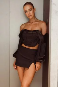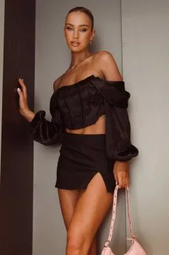 Hello, beautiful! Hit the town in our gorgeous Elouise crop top. Featuring romantic, long, balloon sleeves and an off-shoulder style. Perfect for a date night with your lover. Team it with a mini skirt and boots for a look that will turn heads.
