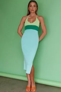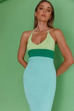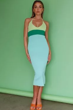 Here Comes The Sun Amber Halterneck Knit Midi Dress Green