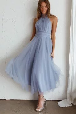 You’ll feel like a princess in our stunning Andria midi dress. Perfect for a wedding or special occasion where you need to look like literal royalty. We are obsessed with its romantic tulle and gorgeous high-neck halterneck. Team it with diamante heels and a satin clutch for a look that’ll leave Prince Charming speechless.