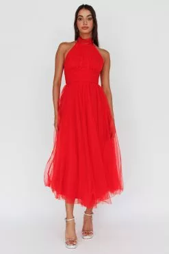 You’ll feel like a princess in our stunning Andria midi dress. Perfect for a wedding or special occasion where you need to look like literal royalty. We are obsessed with its romantic tulle and gorgeous high-neck halterneck. Team it with diamante heels and a satin clutch for a look that’ll leave Prince Charming speechless.