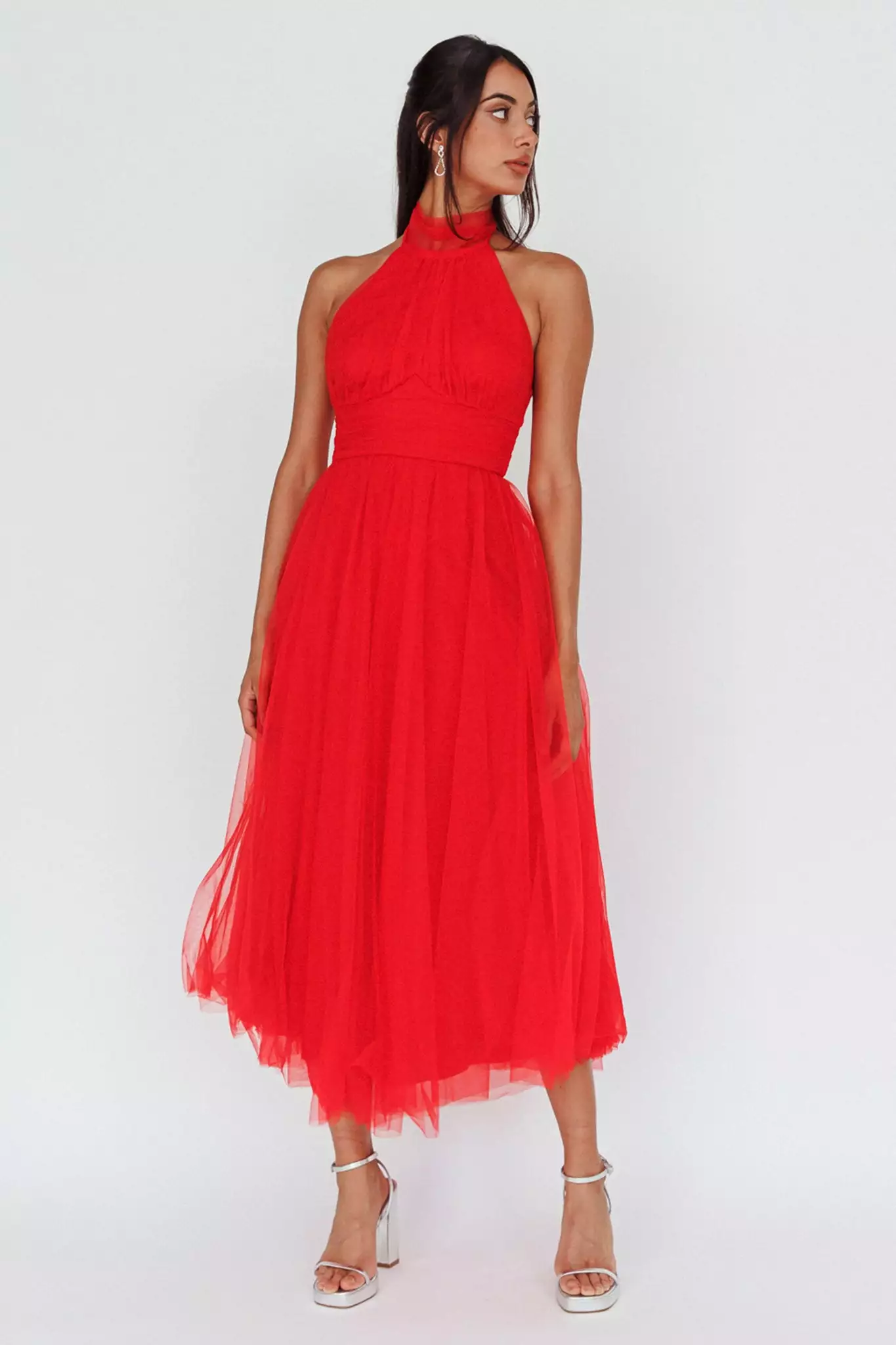 - Red midi dress