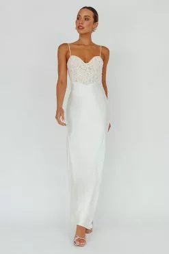 Heads will turn when you walk in wearing our showstopping Evening Star maxi dress. Featuring a satin skirt and lace bodice. Perfect for a wedding or special occasion. Team it with nude heels and a clutch for an unforgettable look.