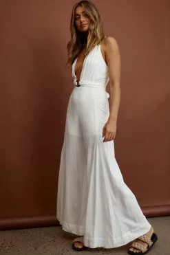 We are obsessing over our gorgeous Franklin jumpsuit. Featuring a plunging neckline and wide leg pant. Perfect for a girls’ Sunday brunch date. Team it with mules and a tote. Trรยจs chic!