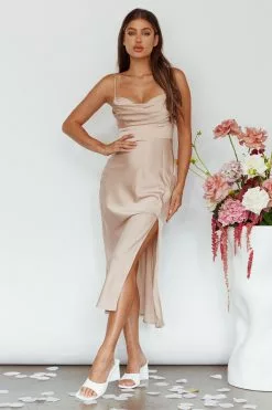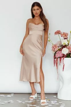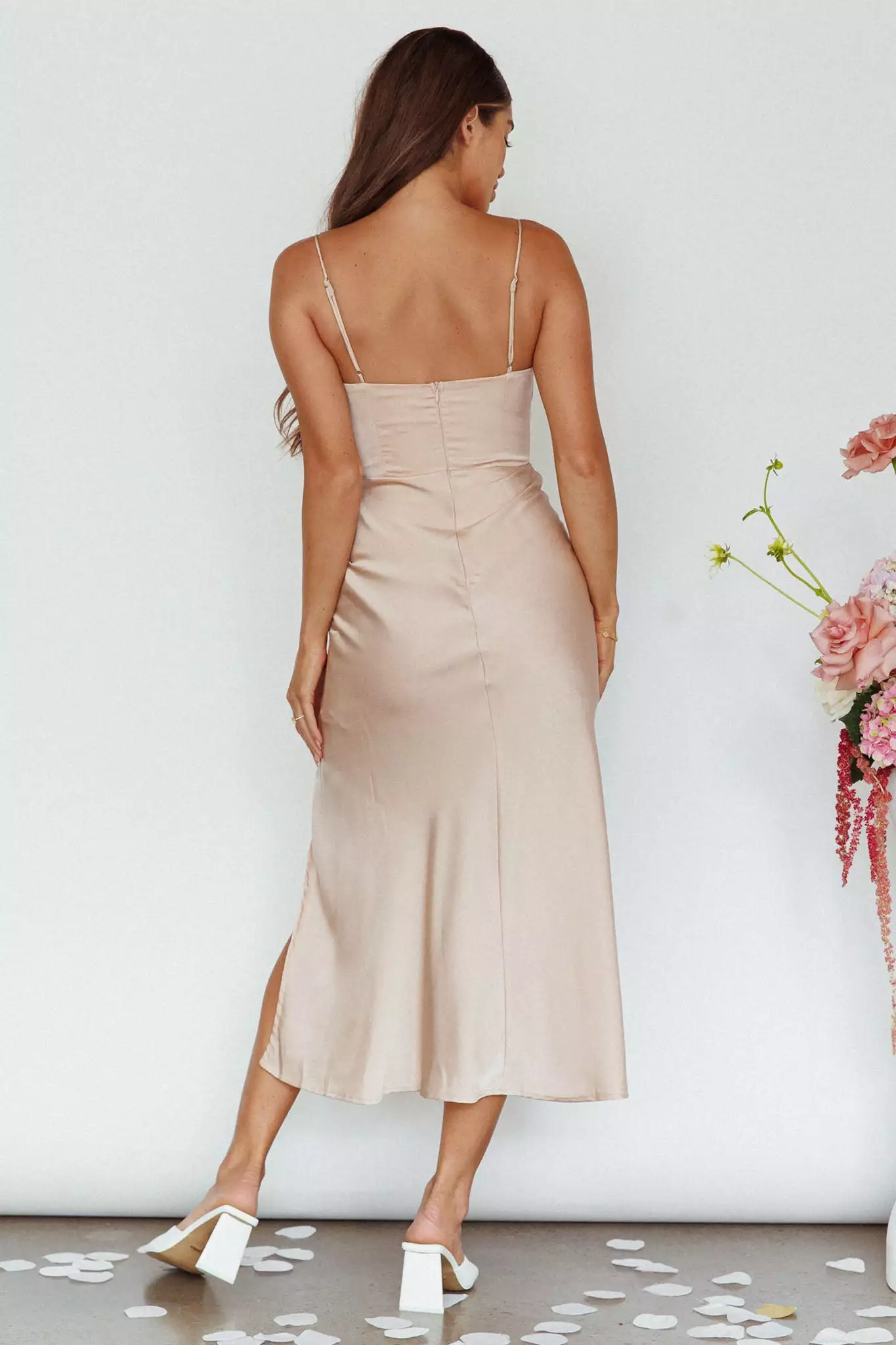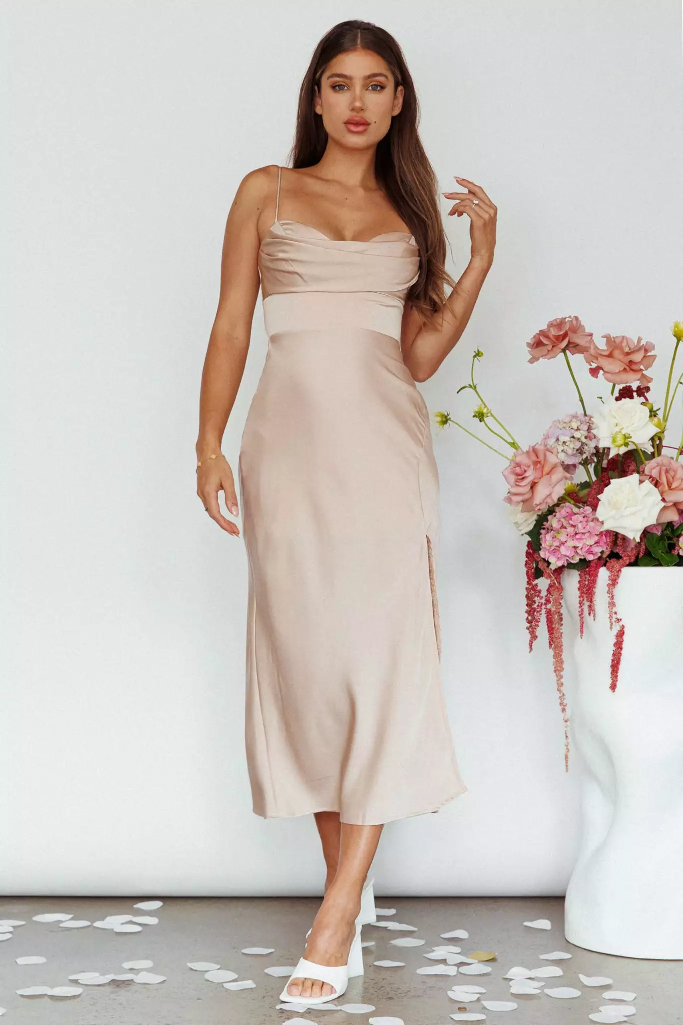 Call off the search. This is the one you’ve been looking for! We are in love with our gorgeous Giorgette midi dress. Featuring gathering in the bust and a sexy split in the side. Perfect for a wedding or a special occasion. Team it with strappy, tie-up heels and a clutch for an unforgettable look.