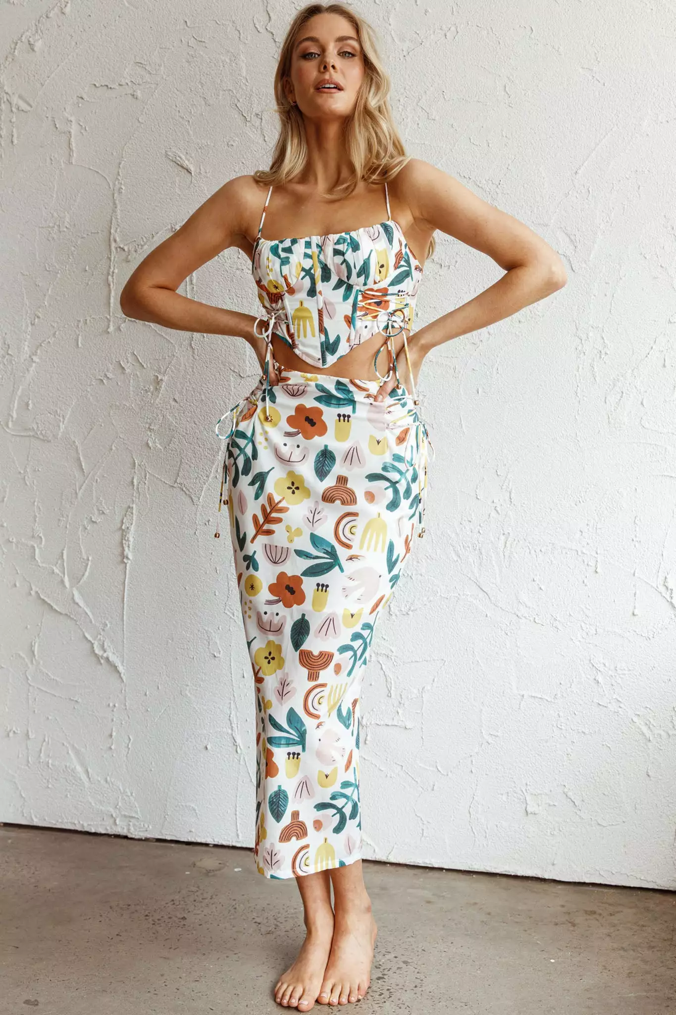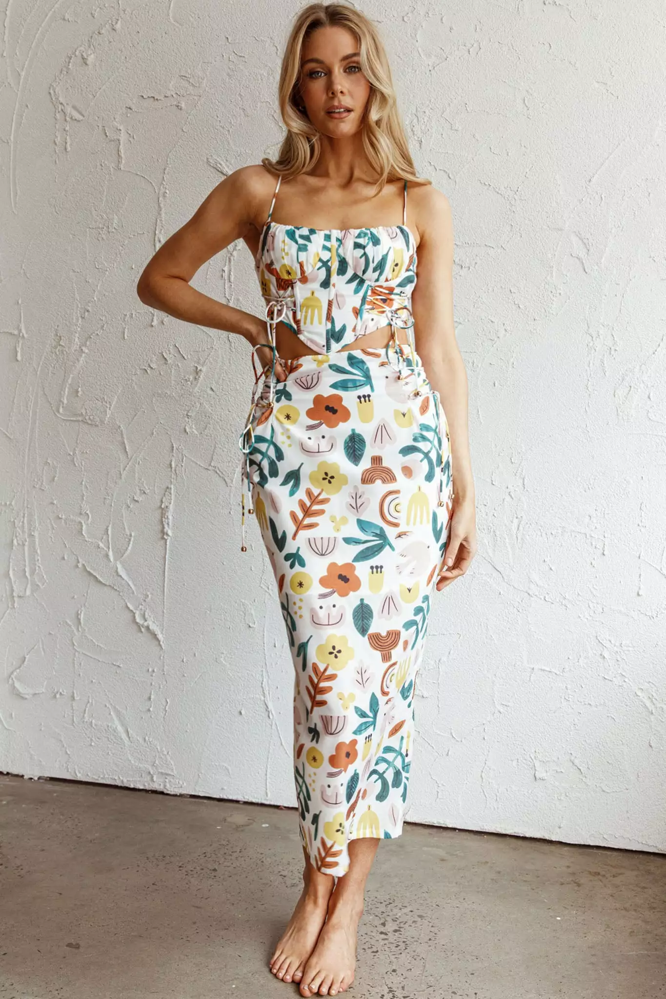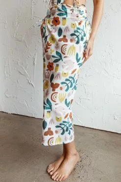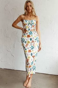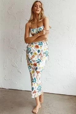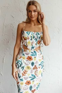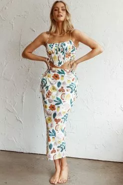 Here Comes The Sun Graziella Lace Up Midi Skirt White Base