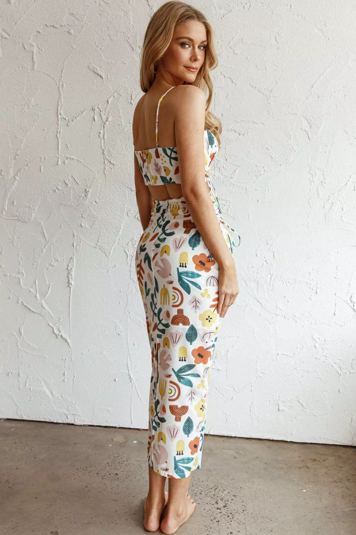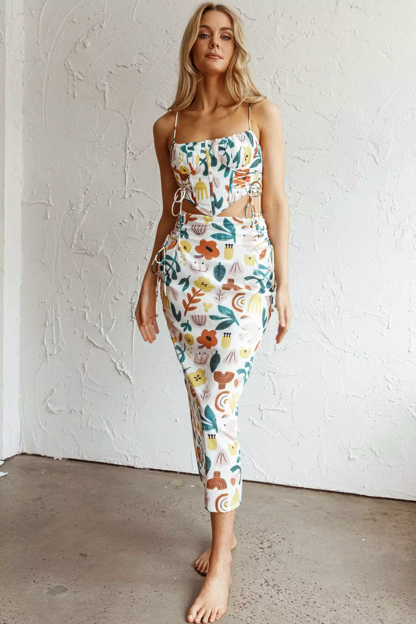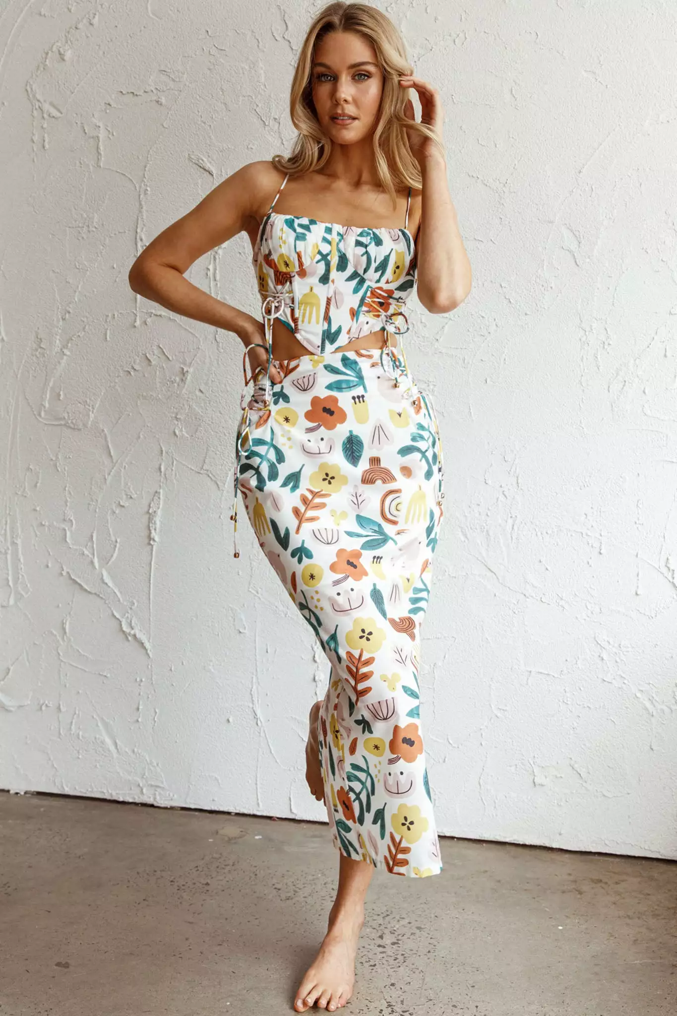 Here Comes The Sun Graziella Lace Up Midi Skirt White Base