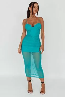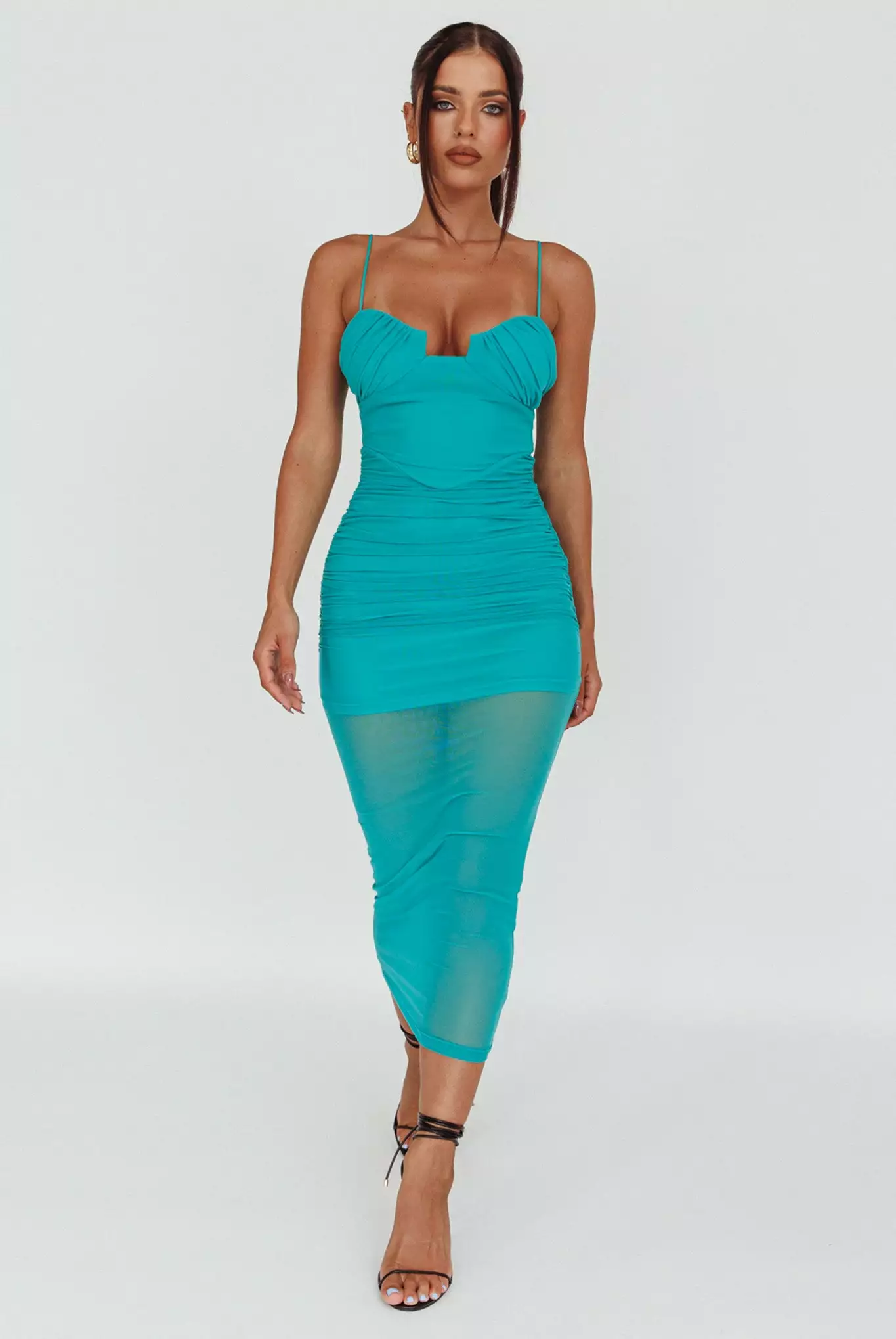 Turn heads in our hot Jahzel midi dress. Featuring a mesh overlay and ruching detail. It’s perfect for a girls’ night out teamed with mules, a tote and a sleek ponytail for a look we are loving.