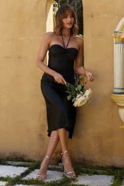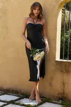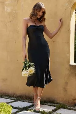 Make an entrance in our chic Kindred Spirit midi dress. Featuring a sexy split and strapless style, we’re in love! Perfect for a wedding or date night. Team it with mules and a tote for a pretty look we are loving.