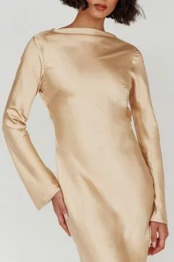 Steal the show in our gorgeous Lavera dress. Perfect for a wedding or special event. We are in love with its open, cowl back and chain closure detail. Team it with nude heels and a clutch for an unforgettable look.