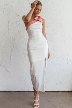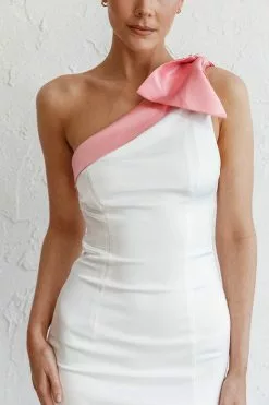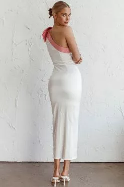 You won’t be able to stop the stares in our gorgeous Sweetest Thing maxi dress. Featuring a one-shoulder style witha bow accent. It’s perfect for a bridal shower or prom teamed with white mules and a clutch for an elegant look.