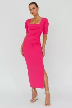 Steal the show in our gorgeous Valette midi dress. Featuring puff sleeves and ruching in the waist. Perfect for Friday nights with your girls at your fave rooftop spot. Team it with kitten heels and a saddle bag for a chic look that will turn heads.