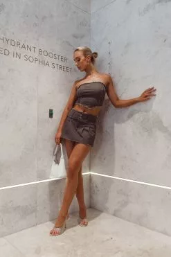 Channel that Y2K energy with our super cute Hot Girl Summer crop top. Featuring a raw edge finish and super cute, lace-up back. It’s perfect for mall days with your besties teamed with our Spring Breaker mini skirt and a tote.