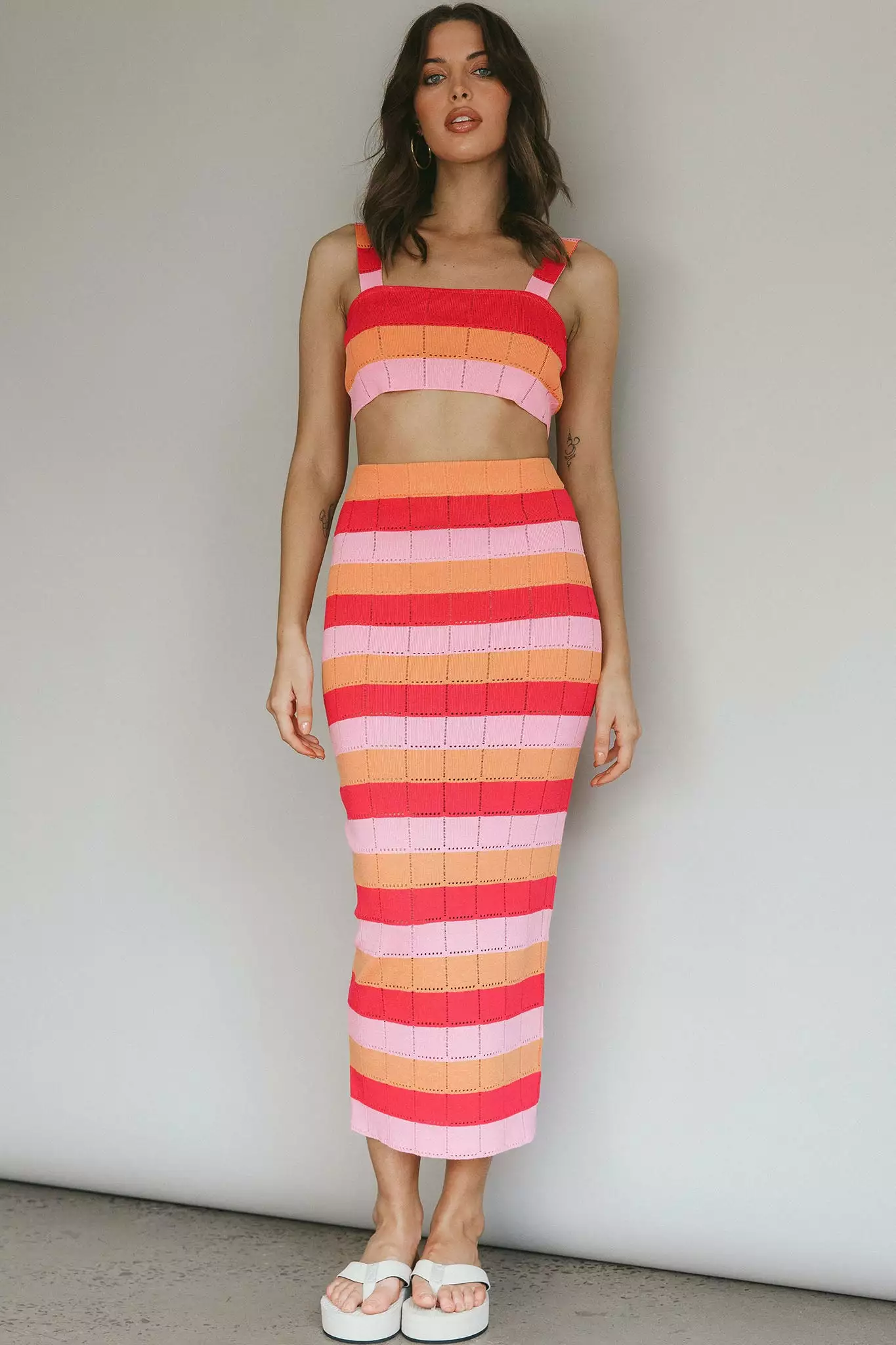 The weather’s getting warmer and the days are getting longer. Our Chase The Sunrise top is just what you need to complete your Summer wardrobe. Featuring a crop length and soft knit, it’s perfect for weekend coffee dates with your girls. Team it with its matching maxi skirt for a look we are loving.