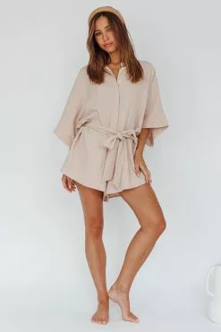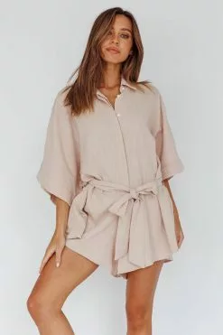 Breeze through your day in style in our chic Daytona Beach romper. Featuring a relaxed fit and removable waist tie, it’s perfect for weekend coffee dates with your girls teamed with a straw tote and slides.