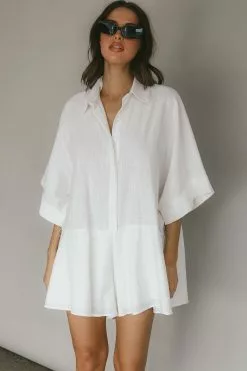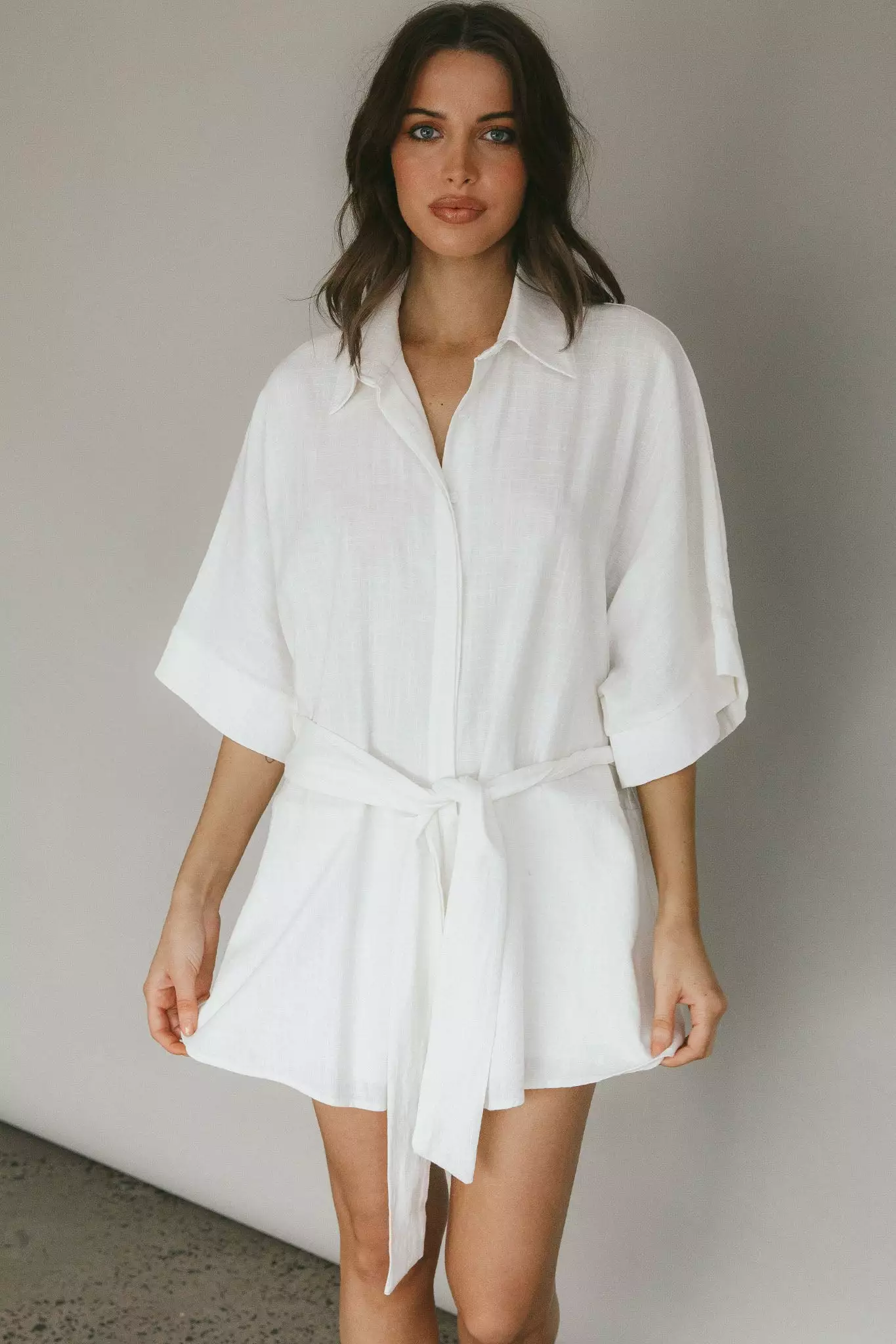 Breeze through your day in style in our chic Daytona Beach romper. Featuring a relaxed fit and removable waist tie, it’s perfect for weekend coffee dates with your girls teamed with a straw tote and slides.