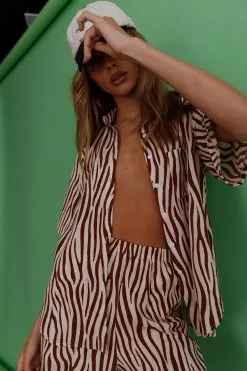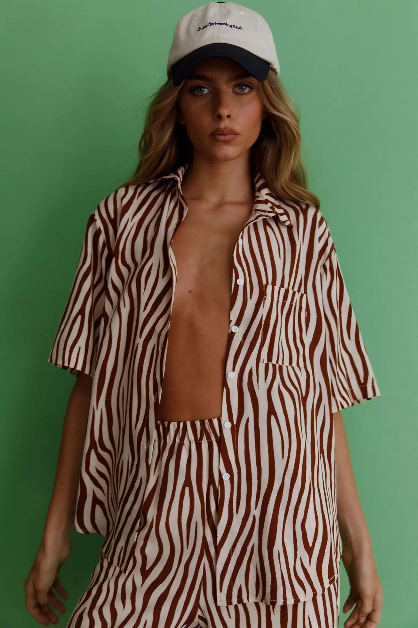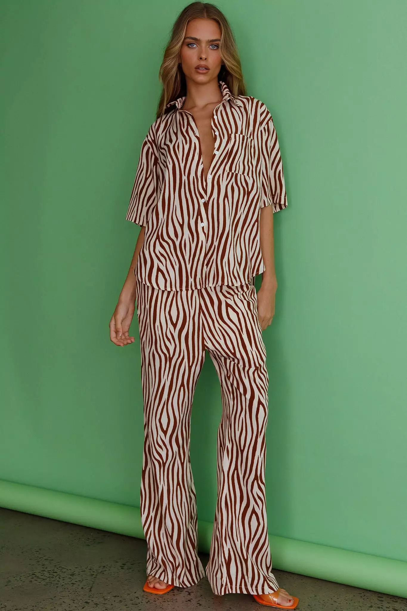 Hey there, cutie! We are loving the print on our Just A Hunch shirt. Perfect for weekend brunch dates with your besties, it looks super cute paired with its matching pants or wear it with a denim skirt and mules for a look we are loving.