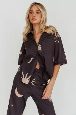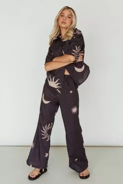 Hey there, cutie! We are loving the print on our Just A Hunch pants. Perfect for weekend brunch dates with your besties, they look super cute paired with their matching shirt or wear it with a vest and mules for a look we are loving.