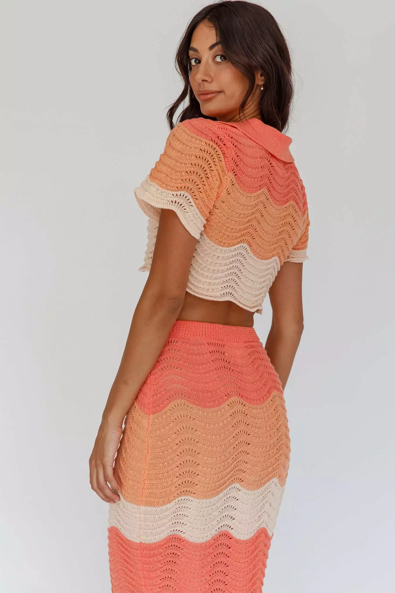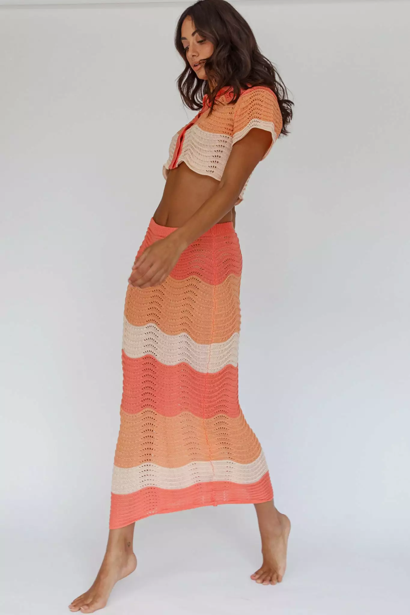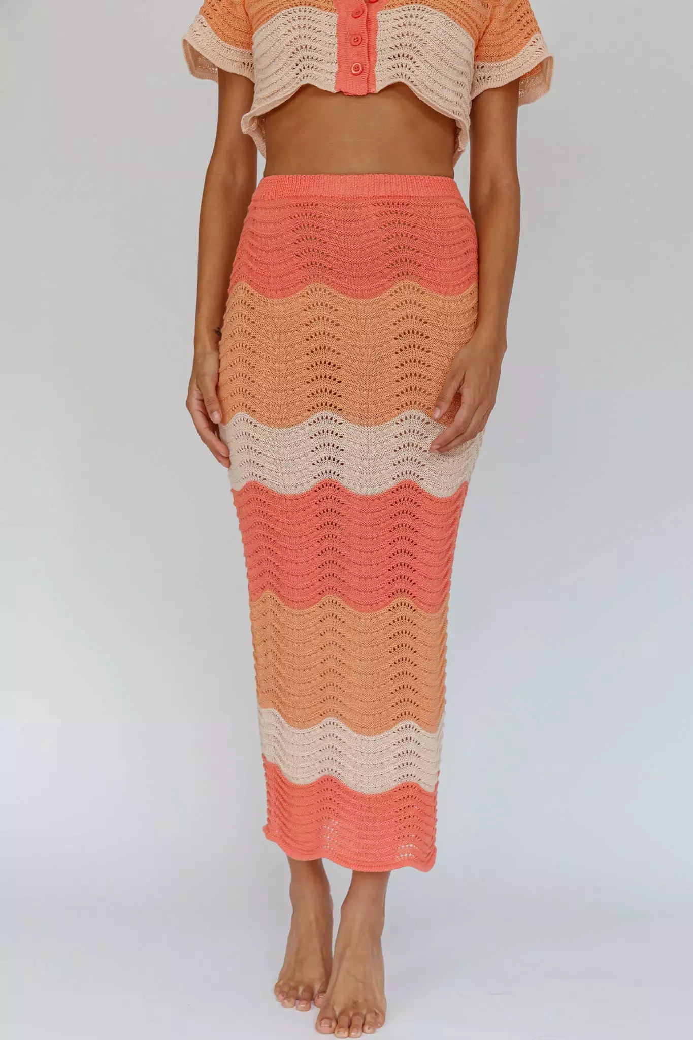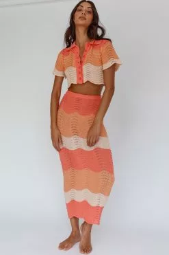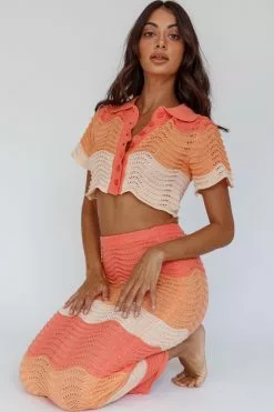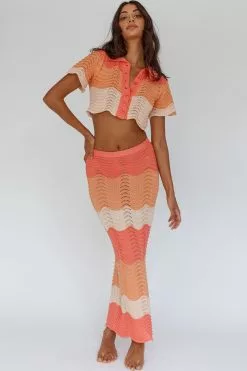 - Tangerine, knit, maxi skirt