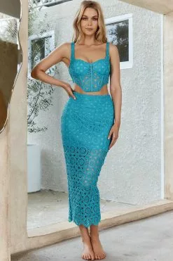 Make an entrance in our hot Milano crop top. We are in love with its pretty crochet lace throughout, perfect for weekend brunch dates with your besties. Team it with its matching midi skirt and mules for a chic look that’ll be sure to turn heads.