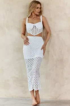 Make an entrance in our hot Milano crop top. We are in love with its pretty crochet lace throughout, perfect for weekend brunch dates with your besties. Team it with its matching midi skirt and mules for a chic look that’ll be sure to turn heads.