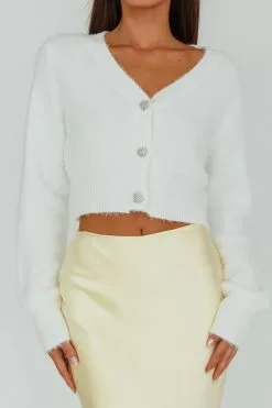Sugar couldn’t make you any sweeter in our Chica Dulce crop top. Featuring a fuzzy knit and adorable, diamante heart buttons. It’s perfect for a playful date night teamed with wide-leg jeans or a satin midi skirt.