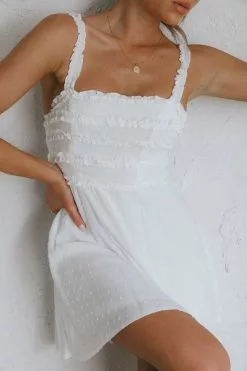 Hey, babydoll! You are melting hearts in our adorable Illia dress. Featuring elasticated, frill straps and the sweetest frill trim detail in the bodice. Perfect for a flirty date with your beau teamed with tan mules and a tote. Super cute!