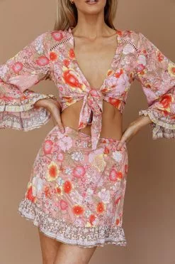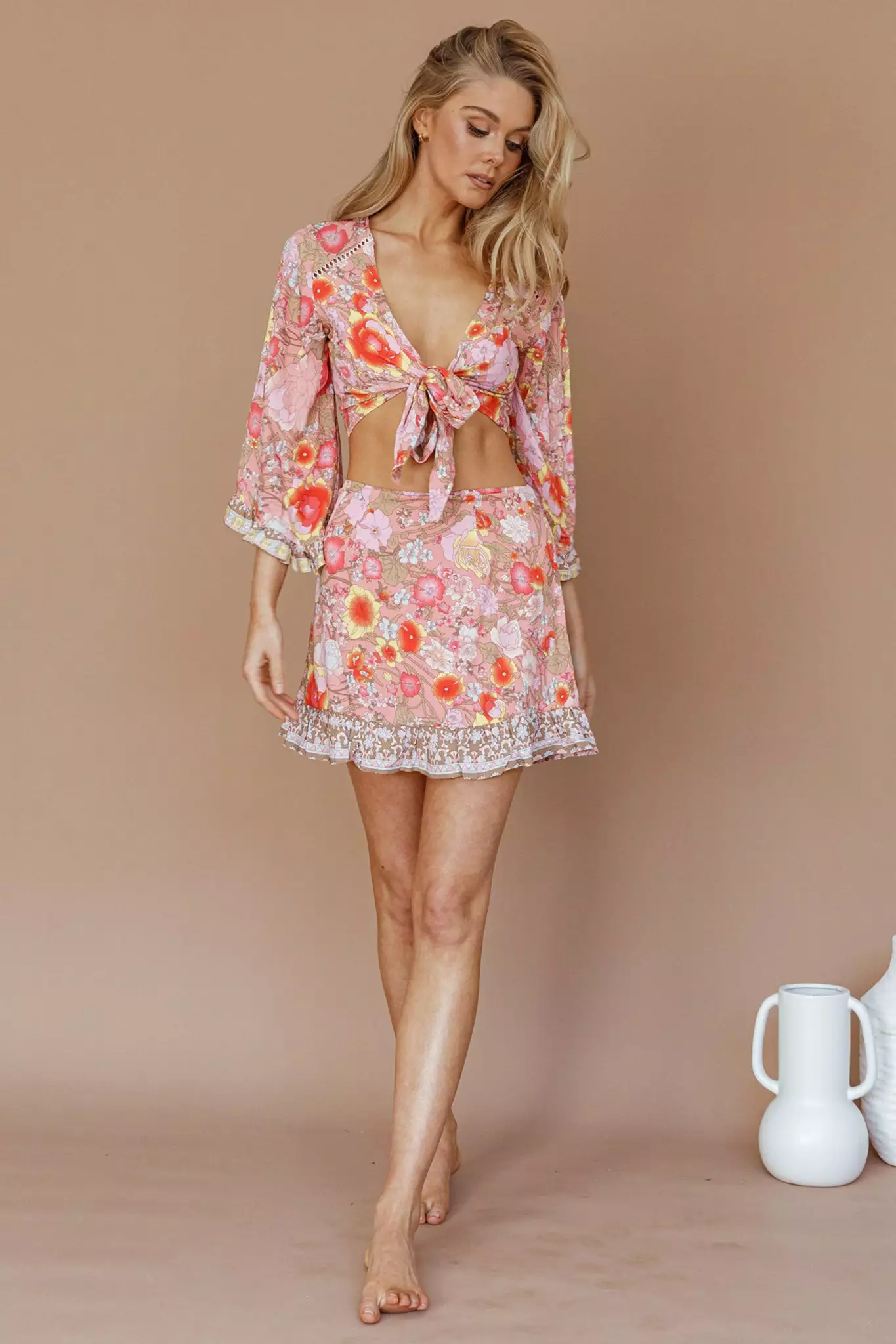 Breeze through your Summer in our pretty Island Girl mini skirt. Featuring a cute frill trim detail. Perfect for weekend pool parties teamed with its matching crop top and wedges.