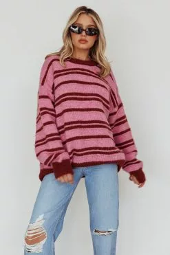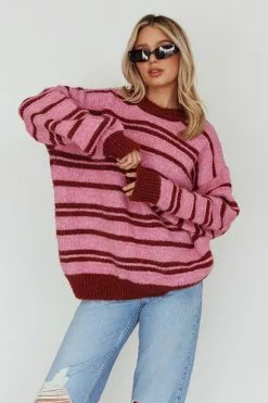 - Pink, striped sweater